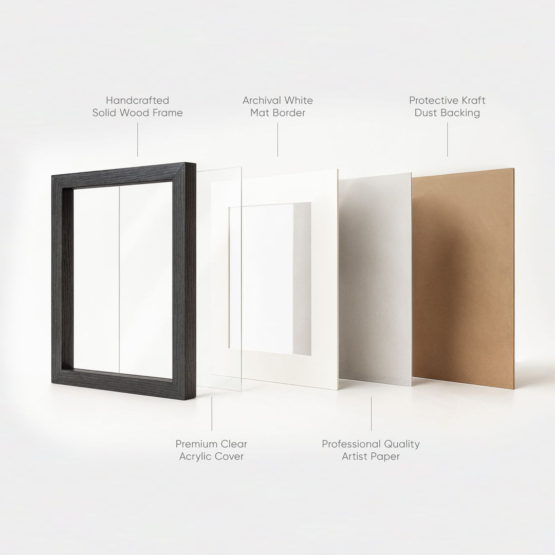 Premium wood frames — choose color.